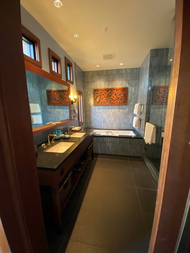 Our trip continued when after two nights at the Riviera Resort, we switched locations to Copper Creek at the Wilderness Lodge and stayed in one of the DVC cabins. What a change in scenery it was! We left what felt like a 5th Avenue penthouse to a luxurious cabin secluded in the woods of the Pacific Northwest.