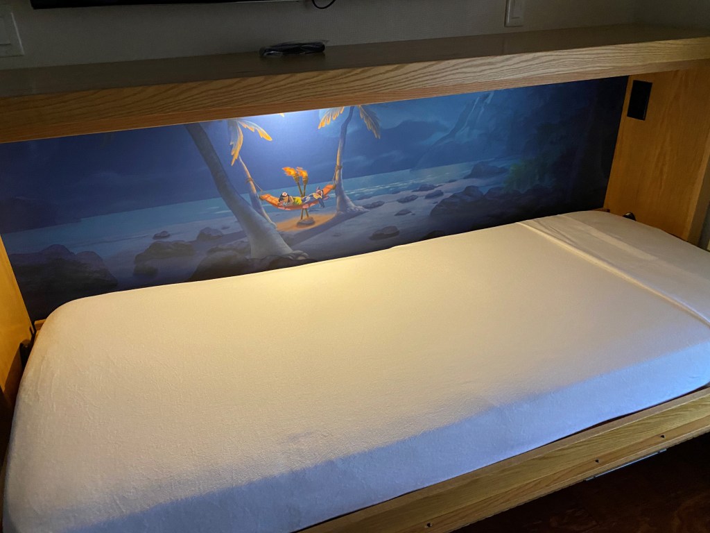 The boat transportation to Magic Kingdom makes this resort very convenient and our teens were able to pop back to the park at night while we took advantage of some adult relaxation in the hot tub and at the Grand Floridian for a glass of wine in the Enchanted Rose library. The cabins have a spectacular screened in porch with two-sided gas fireplace and a beautiful great room which for those traveling with more than four family members has a comfortable pull out sofa and chair that make sleeping accommodations very convenient. The second bedroom also has a twin murphy bed pull down (with some added Disney magic) to accommodate an extra person.