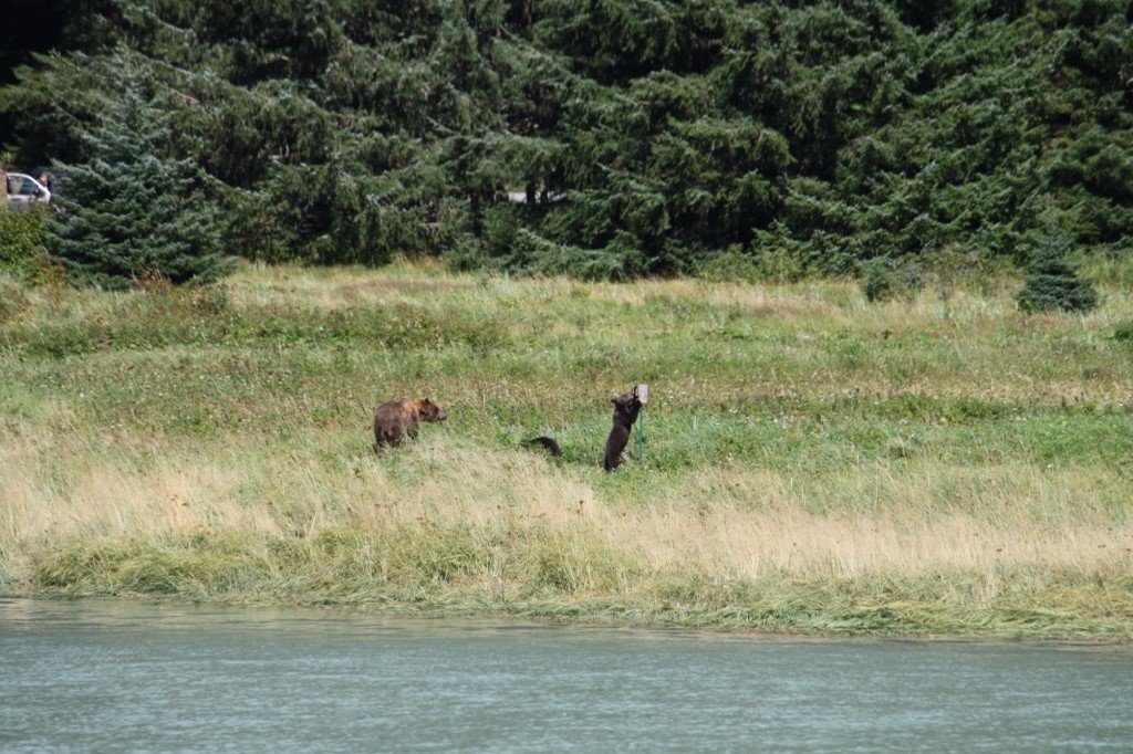 On day 4, we docked in Skagway and took a ferry to Haines, Alaska where we boarded a bus to drive out into the wilderness to see wildlife and meet some of the people who live in these areas. On the way, we saw many bald eagles as well as a mama brown bear and her cubs playing on the opposite riverbank. We then took a nature walk and got to see the salmon running to their spawning grounds. After a long eventful day, we got to bed early after dinner, the show, and a little free time.