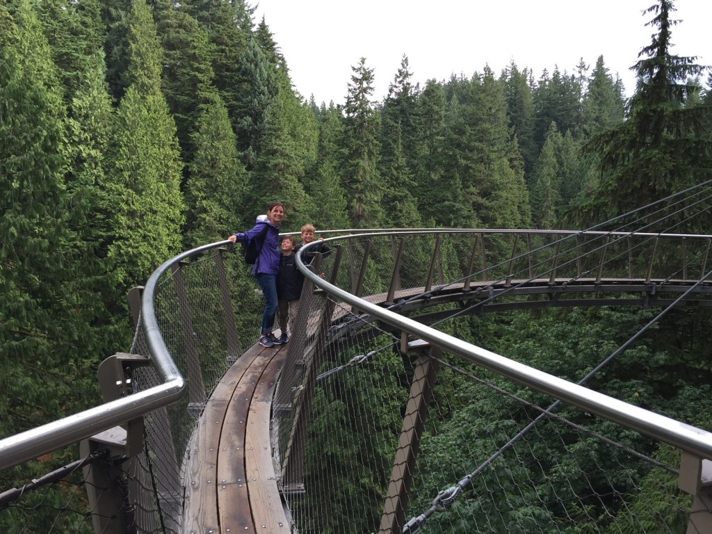 The last day we got up early, ate breakfast and walked our bags across the street to the Fairmount Waterfront hotel which is literally across the street. We had rented a car and the rental service dropped it off at the hotel that morning, so we checked our bags and picked up the keys and were off to the Sea to Sky Highway and Whistler-Blackcomb. We took the gondola up the mountain to the restaurant and had lunch and a glass of wine. The kids were able to stand on the Olympic podium and watch some of the mountain bikers.  We then went up to the peak on the ski lift and took pictures from the top.  It is definitely not for the faint of heart, but the views are incredible.  After that, we did the Peak to Peak gondola ride and explored the town before driving back to the hotel to relax, eat one more time at Tap and Barrel and prepare for our trip home the next day.