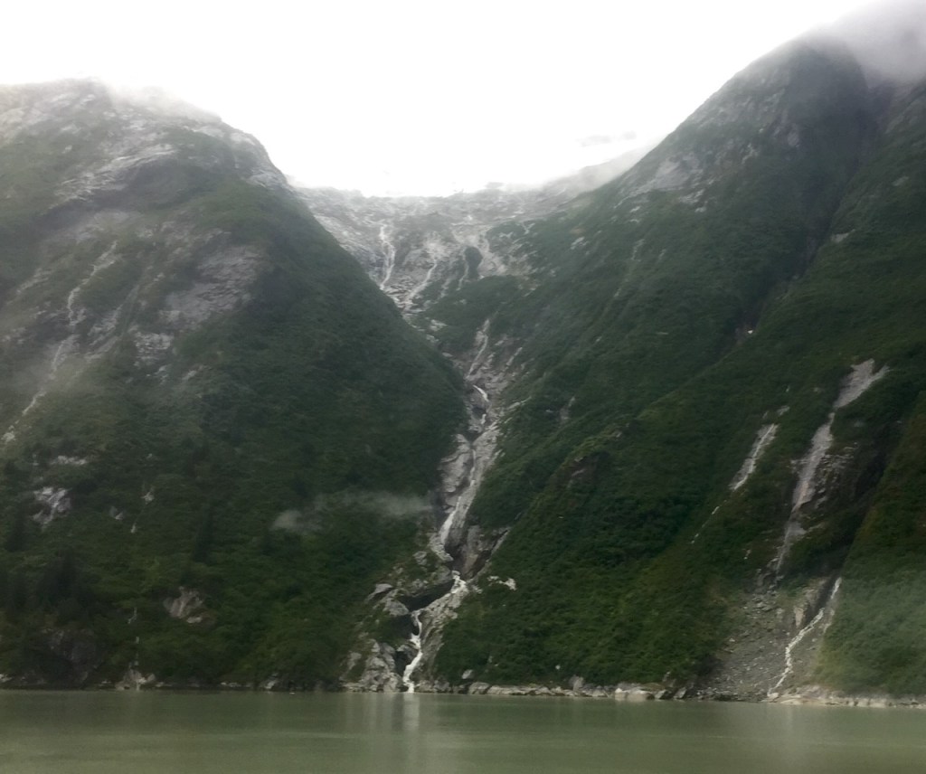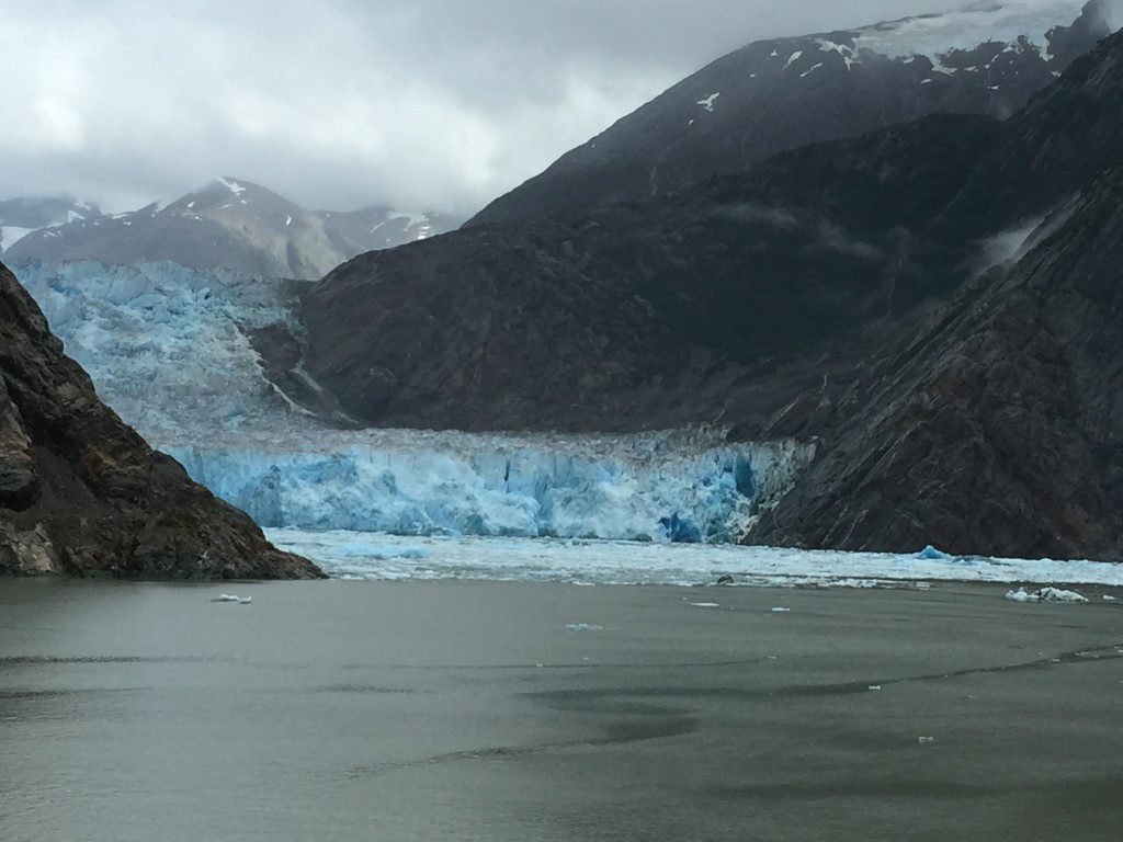 The next day we were off to Tracy Arm fjord and glacier. The captain did a masterful job navigating these narrow waters. In addition to the great captain, Disney had an expert on wildlife and Alaska on board who quietly explained things on the loudspeaker as we passed by, and did several lectures throughout the week to let us know what we were seeing and what to watch for, as well as how to respect and protect the wildlife and wilderness we would encounter. They even had blankets out on deck so you could cozy up with a hot beverage and your family to watch as we approached. As we approached the glacier, we definitely were not prepared for the awesomeness of what we would see and the shear enormity and beauty of the wilderness and glacier. The captain spun the ship around (slowly of course) so both sides were able to take full advantage of this once in a lifetime experience.