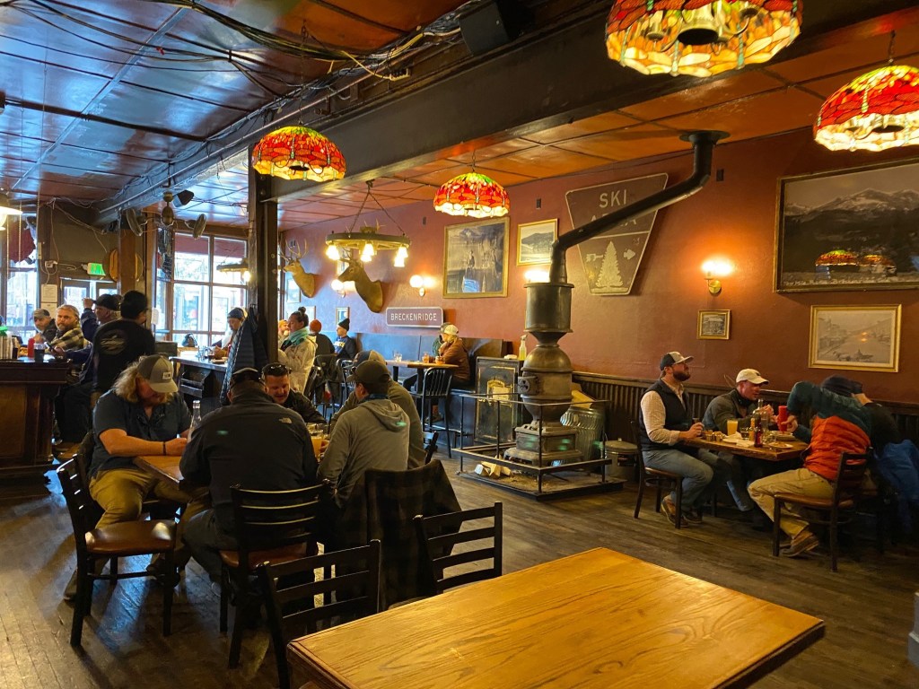 There are three eating establishments near the peaks: Pioneer’s Crossing on Peak 7, Vista Haus on Peak 8, and The Overlook on Peak 9. In addition, at the base there are several places to eat including The Maggie on Peak 9, One Ski Hill Grill, The Living Room, and T-bar on Peak 8 and The Sevens on Peak 7. Besides the restaurants associated with the mountain there are also places to eat at the base not owned or operated by Breck.