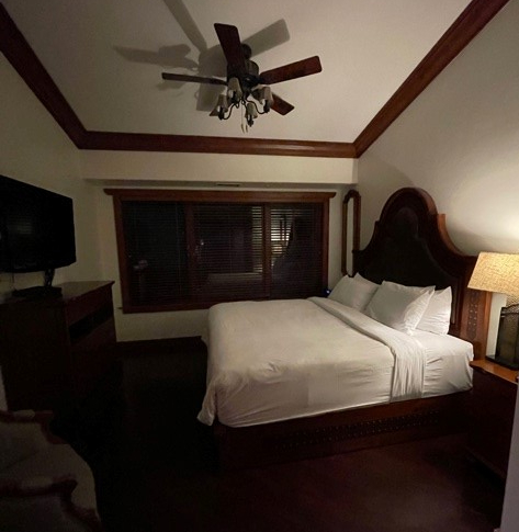 We stayed in a 2 bedroom that overlooked the slopes and was very well appointed with a king in the master and two double bunk beds in the second bedroom. It had two full baths (the master has a steam shower), a full kitchen, indoor gas fireplace, and 3 televisions.