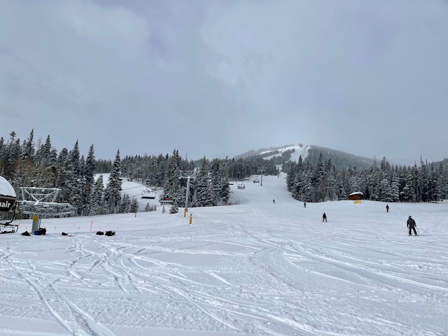 Breakfast was included each morning (we chose eggs, bacon, sausage, a muffin, fruit and a drink) from the hotel and it was not only filling, but also quite tasty. What a great way to get some energy prior to hitting the slopes! The hotel in non-Covid times also sports sunny slope side Skiers’ Plaza, Skier Restaurant, a lively après-ski bar, and a full-service restaurant that unfortunately were limited during our visit.