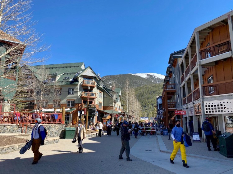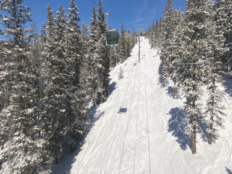 Unlike Breckenridge which has a main street with an old town feeling, River Run is your traditional ski village at the base of the mountain. There are quite a number of good places to eat and drink après ski, a small grocery/liquor store and some shopping. We grabbed a quick beverage and mid-afternoon snack at Montezuma Roadhouse on their expansive patio on a beautiful spring day. The crepe stand and cookie place were also fantastic! We got takeout from Pizza on the Run and Luigi’s pasta house – both were also fantastic and the portions from Luigi’s were huge! For a smaller mountain, this was a great little ski village with everything you could possibly need.