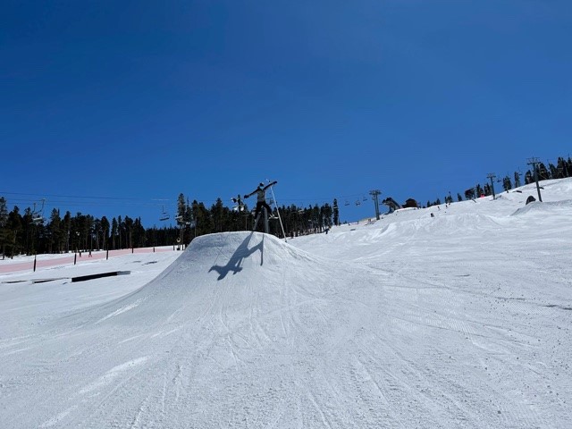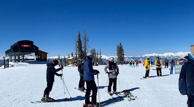 The lift lines are typically short and Labonte’s Smokehouse Barbeque at the base by the Ruby and Santiago Lifts is a great spot to eat or relax in the sun at one of the many tables or Adirondack chairs outside. We heard from folks there that during non-pandemic times they typically have a deejay that plays music there during ski season.
