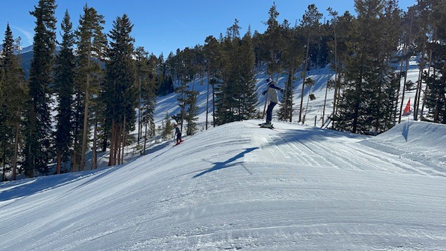 The Summit House eatery lies at the top and is a great place to eat with indoor and outdoor seating. There is also the Outpost Gondola connecting Dercum Mountain with North Peak. It is a beautiful 8-minute ride across the peaks and allows you to transfer in both directions for eating and exploring even for those unable to ski the slopes. The lifts take you to 11,640 feet elevation. From here, one can hike in many directions to get to the peak elevation of 12,614. Dercum Mountain has it all. — from long, easy greens and learning areas to the Windows, which feature intense tree skiing. This mountain is also home to the 5 terrain parks which feature about everything one could want from small jumps and boxes to insanely high Olympic size jumps all in one area. Dercum Mountain truly has it all.