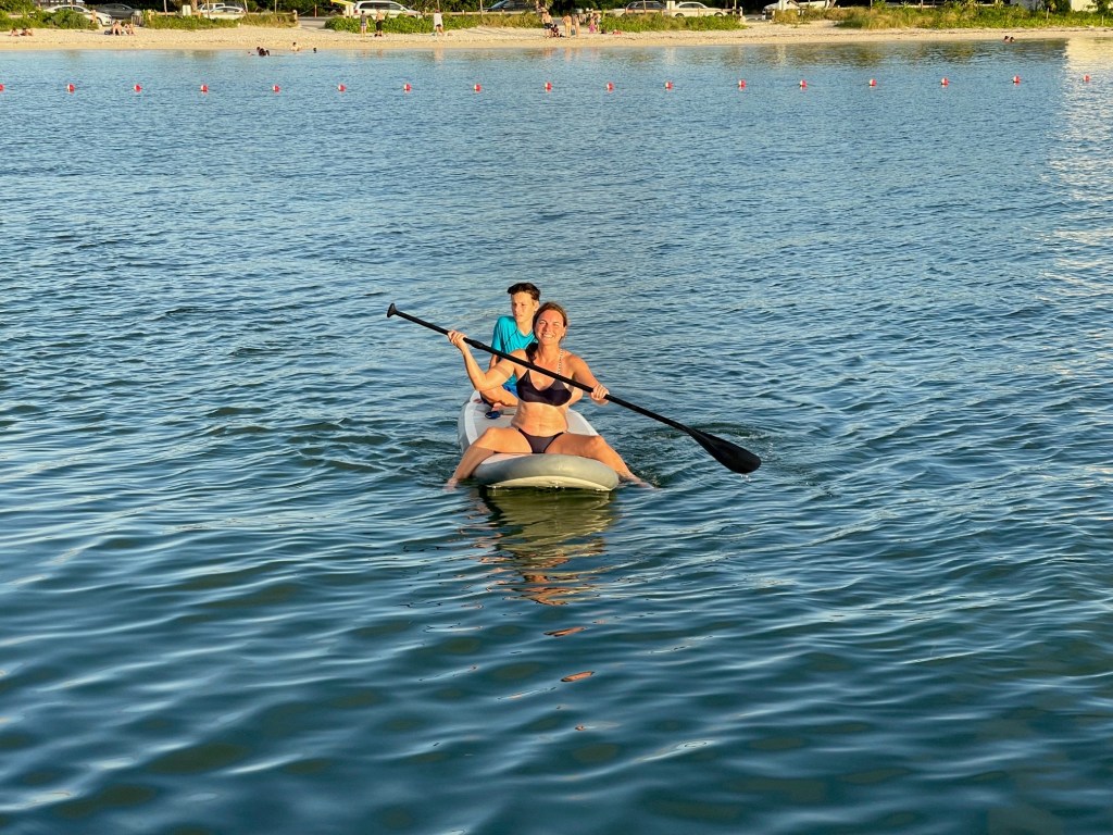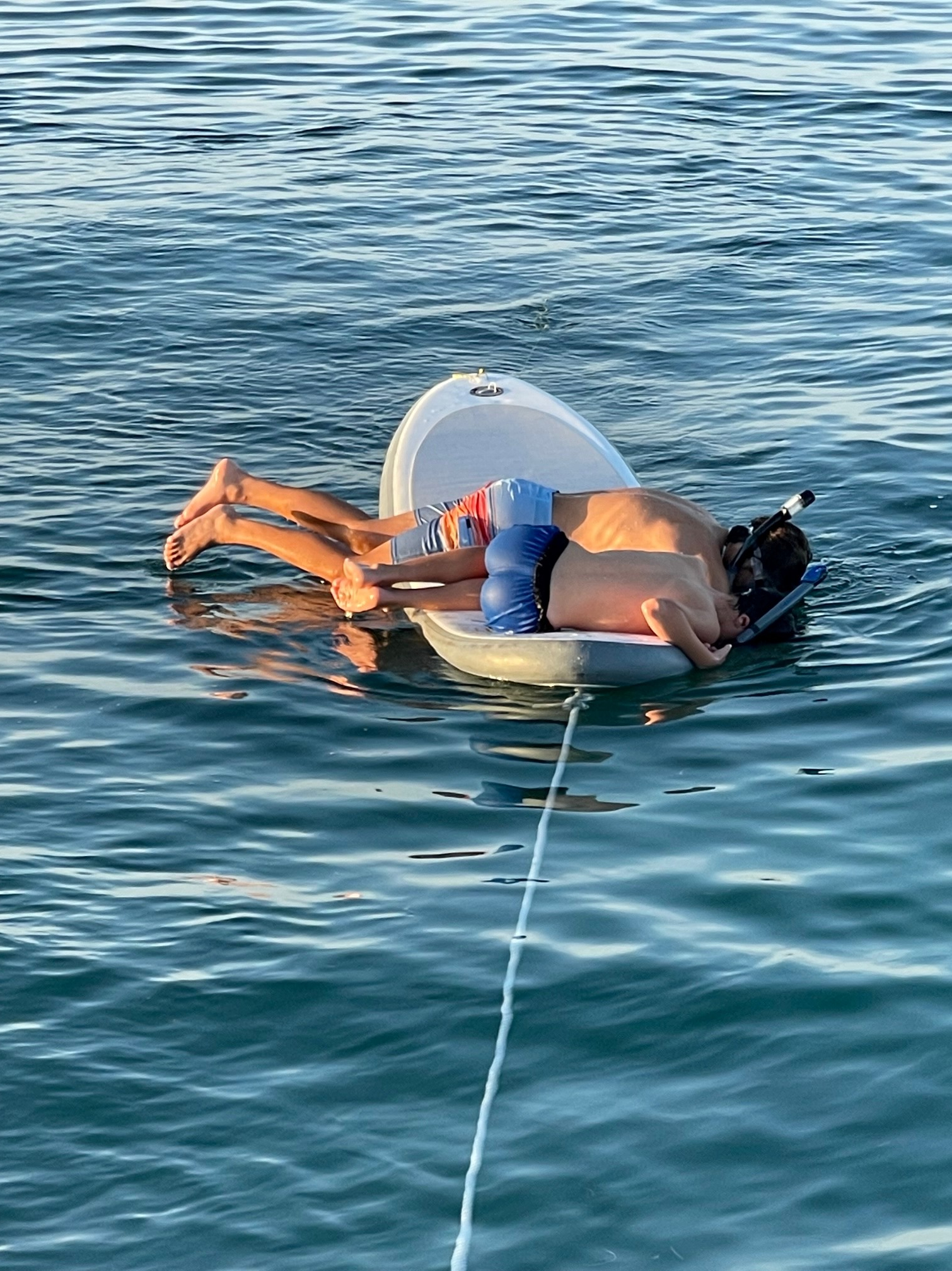 We dropped anchor as the holding was good and headed into the state park for some exploring and snorkeling off the beach. There were only 3 other boats in the anchorage so it made for a cozy spot. We blew up the SUP and let the kids float around while I affixed the temporary mooring light to the spinnaker halyard before raising it up.