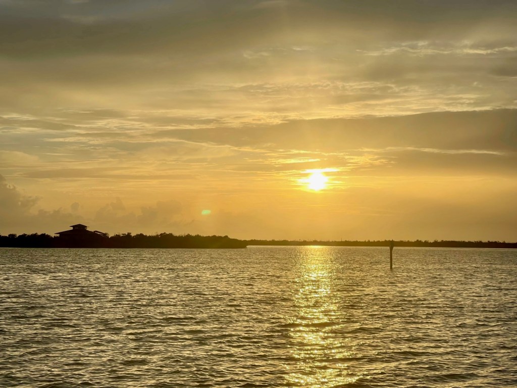 We had a bite to eat and headed up to Newfound harbor almost directly north. We tucked ourselves around the corner between Spottswood Island and Little Torch Key for the night. We grilled some shrimp and made some rice and had a relaxing evening watching the sun come down surrounded by other charter boats. The youngest noticed that our mooring light was out so we turned on the navigation light and sent a message to the Dream Yacht staff who arranged to meet us the next day to give us a temporary light. It was much cooler out on the water and far less buggy since we were so far from shore.